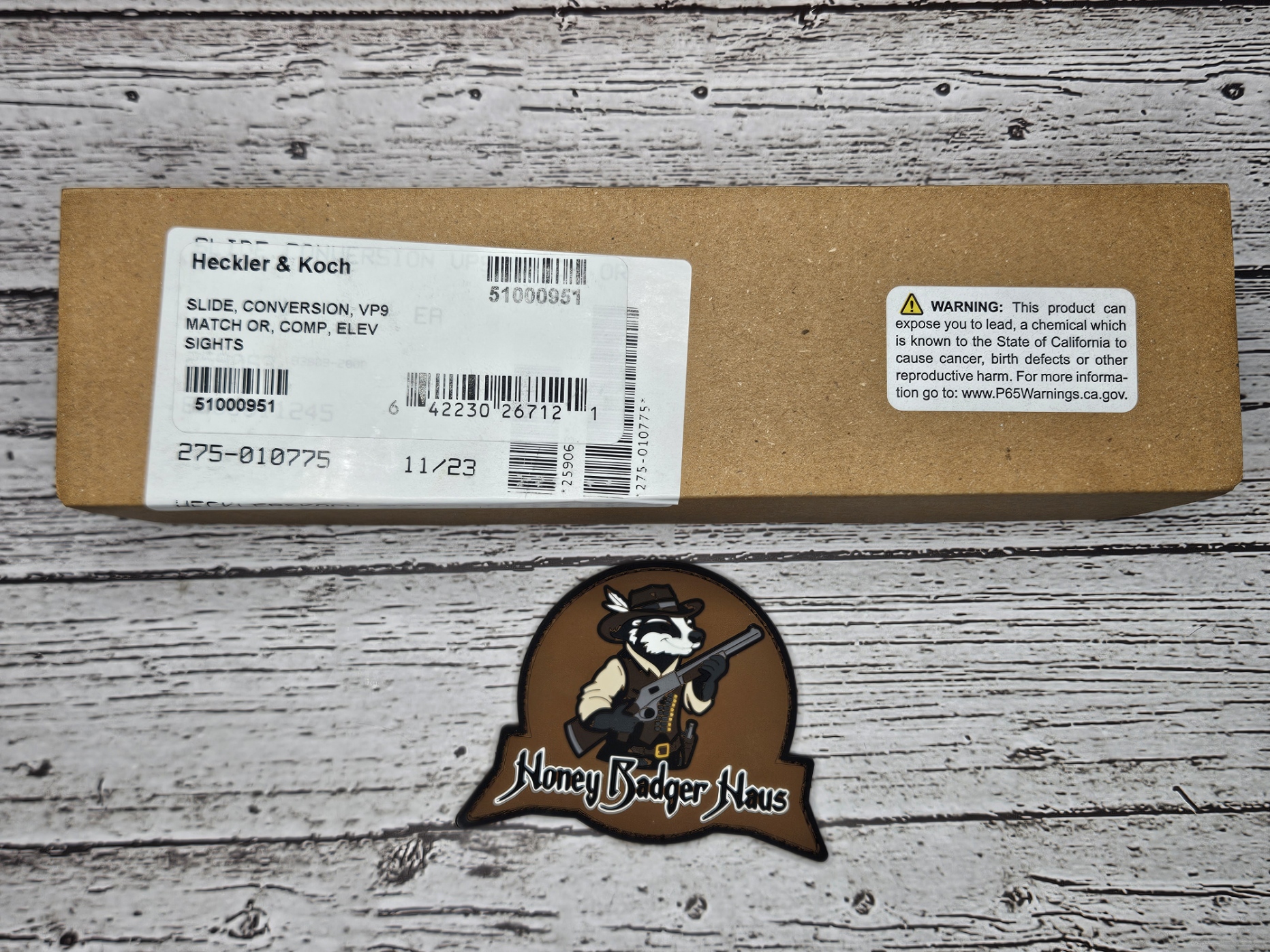 Upgrade your HK VP9 with the precision-engineered Match Slide Kit, designed for enhanced performance and versatility. This OEM German-manufactured slide assembly (Part Number: 51000951) features an optic-ready configuration, allowing seamless integration with popular red dot sights. The included tall sights ensure co-witness capability and improved target acquisition, even with mounted optics.